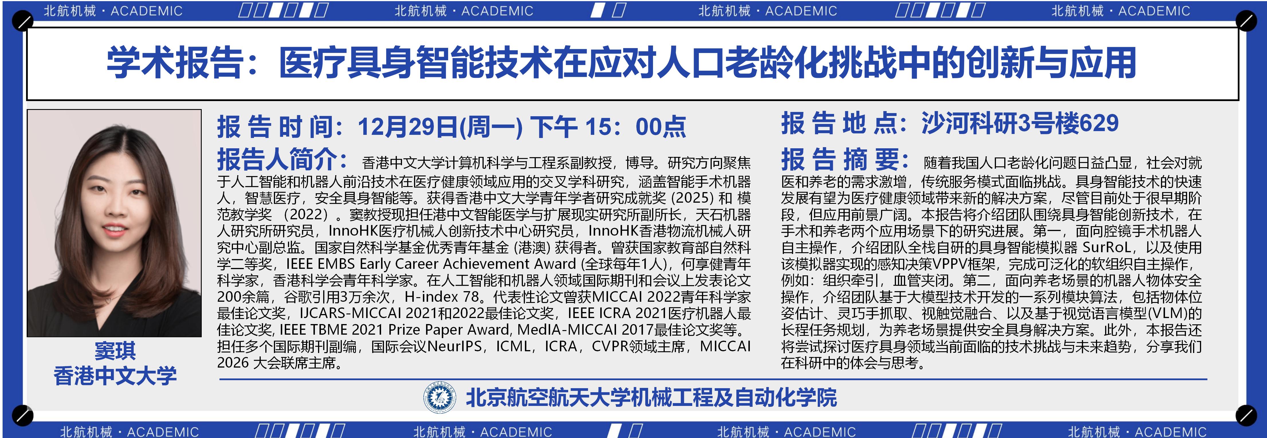 学术报告:医疗具身智能技术在应对人口老龄化挑战中的创新与应用