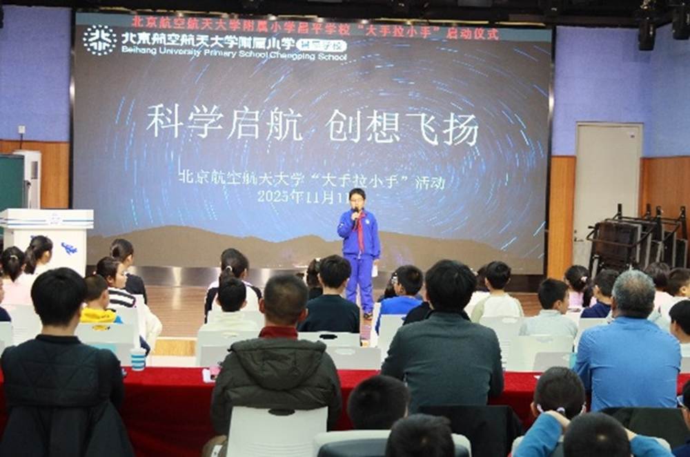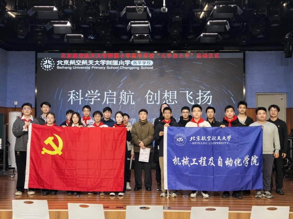 据悉,“大手拉小手”活动首创于2004年,由机械学院学生党支部、北航机器人队、社会实践队共同牵头,组织同学走进中小学担任校外辅导员,开展形式多样的课程与活动。经过二十余年不断发展,以党建带团建,团建带队建的模式,围绕科学精神、前沿科技、科创故事等重点内容打磨系列精品课程。活动曾获评 “支持地方教育特殊贡献奖”与学校 “千岗百时”明星服务站等荣誉。