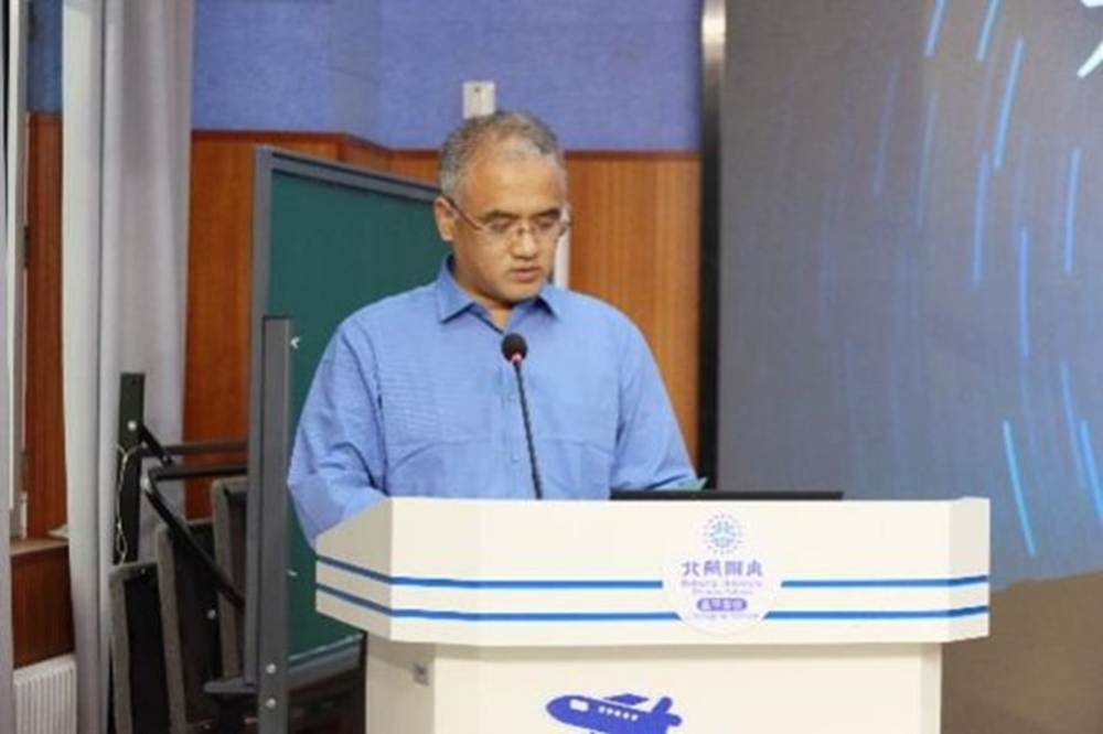 北航附小昌平学校校长尚国兴致辞,尚国兴校长在致辞中对机械学院师生们的到来表示欢迎,对学院长期以来对附小科技教育事业的支持表示感谢。他指出,这一活动以其独特的互动模式和丰富的课程内涵,为附小校园注入了蓬勃生机。大学生辅导员们带来的前沿知识和实践体验,极大地激发了孩子们对科学的好奇心与探索热情,在他们心中播下了向往科学、勇于创新的种子。展望未来,期待双方能持续深化合作,不断创新互动形式,共同构建更紧密的育人共同体,让科学精神在更多孩子心中生根发芽。