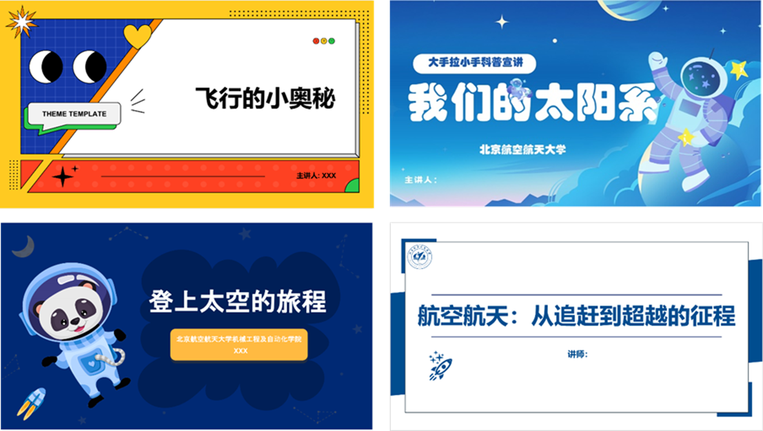 讲师团根据小学生不同年级特点,专兼职辅导员带领集中备课,骨干讲师迭代细化打磨,以“互动性、趣味性、前沿性”为特色,推出了四门精品航空航天科普课程:《飞行的奥秘》《认识太阳系和宇宙》《登上太空的旅程》《航空航天:从追赶到超越的征程》。