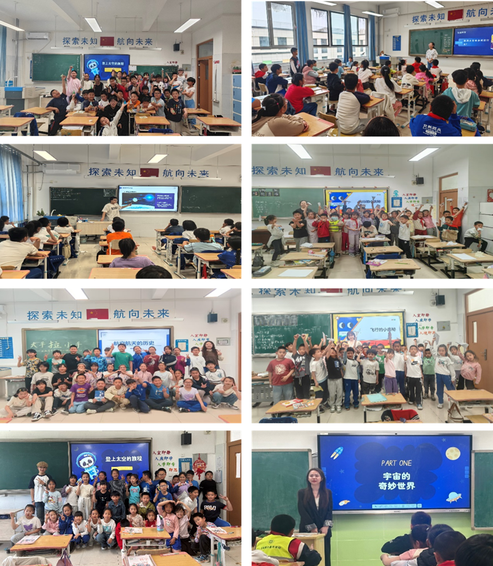 讲师过彦琛同学说,“当一(三)班孩子们睁大眼睛追问飞机为什么能飞时,仿佛看到了曾经的自己,小朋友们认真地折叠纸飞机,从中体会空气动力学的神奇,我们也在讲授中重拾了对科学技术最纯粹的赤诚,这是一场双向奔赴的成长。”讲师王馨悦同学说,“当看到二(四)班各位小航家对飞行器发展历史而惊叹、发光的眼神,我深刻体会到科普的意义不仅是传递知识,更是点燃好奇与梦想。”讲师陈涯同学说,“通过为五(四)班小朋友讲授航空航天发展史课程深刻感受到科普教育的魅力,从热气球到空间站,孩子们眼里的光芒让我明白一个个小小未来总师梦想正站在我们面前,他们的征途是星辰大海。”