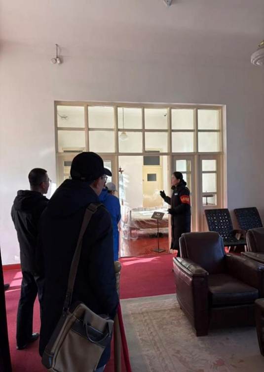 双清别墅,作为中国共产党“进京赶考”的首站,铭刻着中国革命从胜利走向胜利的伟大足迹。在讲解员的引导下,教师们依次参观了毛泽东同志旧居、“毛泽东同志在香山”专题展览等历史场景。一幅幅珍贵影像、一件件厚重实物,生动再现了老一辈革命家为新中国诞生运筹帷幄、呕心沥血的峥嵘岁月。大家久久驻足于《中国人民解放军战略形势图》前,追寻当年的战局轨迹;认真聆听渡江战役的磅礴故事与《论人民民主专政》的诞生历程,深刻体悟其中蕴含的“谦虚谨慎、不骄不躁、艰苦奋斗”的“赶考”精神。
