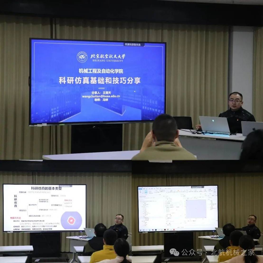 王楚天:科研仿真基础和技巧分享。在第二期活动中,博士生王楚天以“科研仿真基础和技巧分享”为主题作专题汇报。他结合科研工作中仿真手段的典型应用场景,系统介绍了仿真在机理分析与结果验证中的主要方法,并以COMSOL软件为核心工具,通过多个实例详细讲解了有限元仿真过程中的常见问题与应对思路。围绕模型建立、网格划分及计算求解等关键环节,分享了几种常见报错类型的简要解决方法,帮助与会同志加深对仿真流程规范性与工程细节重要性的理解。