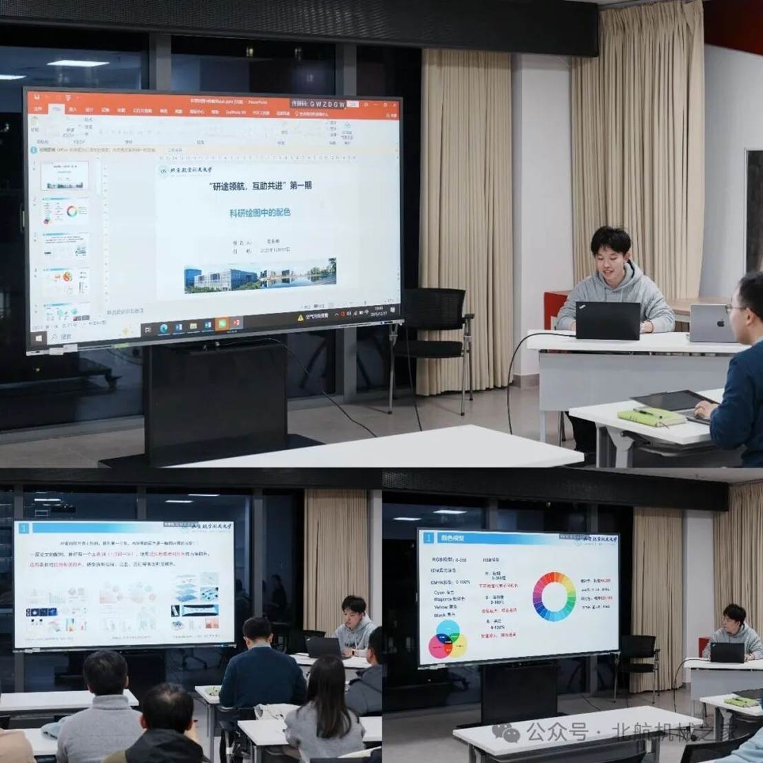 周新朝:科研绘图中的配色。博士生周新朝围绕“科研绘图中的配色”作专题分享。他从科研绘图的实际需求出发,引入色彩模型基础知识,重点以CMYK模型为例,系统讲解了单色、双色及三色配色的基本原则与实现方法,并结合具体科研图像,特别是细胞图像配色案例,展示了如何通过合理配色提升科研图件的美观性、规范性与专业表达效果。