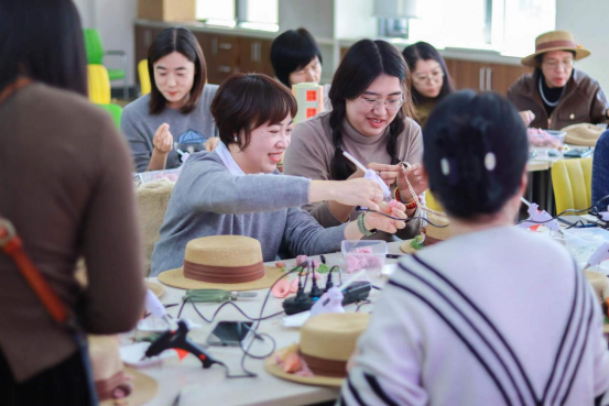 美育七系 手作课堂——机械学院举办三八妇女节花帽手工制作课堂