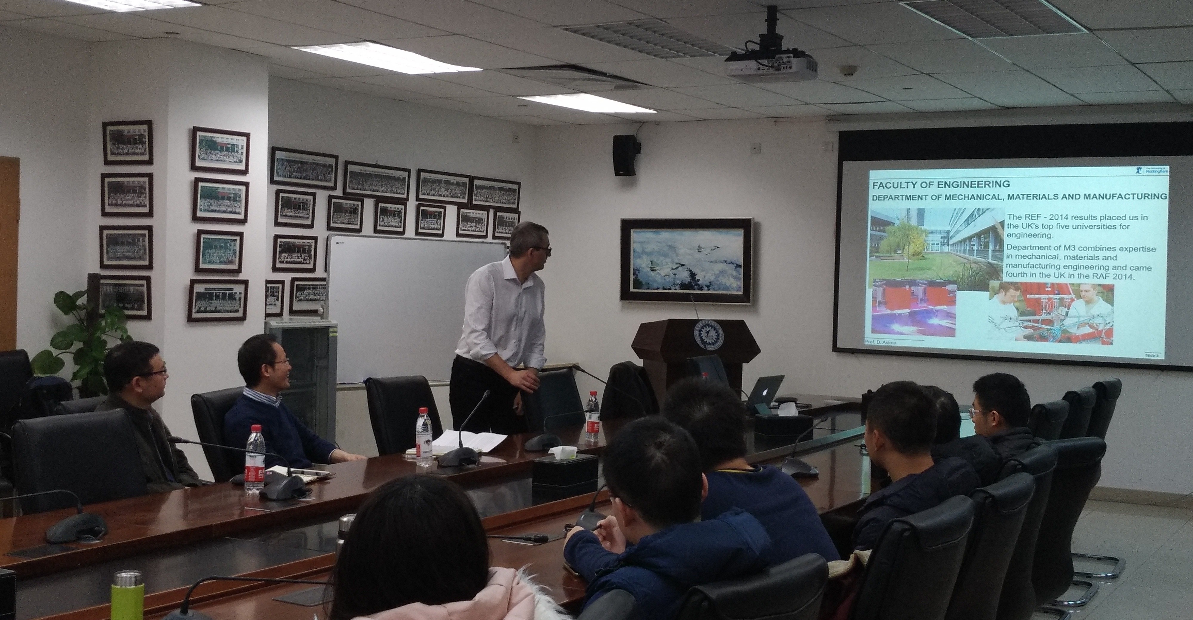 1月4日上午,来自英国诺丁汉大学制造工程学的Dragos Axinte教授做客航空制造大讲堂,在新主楼A849启先会议室为我院师生进行了一次题为《“Portable factories” for repair and maintenance of high-value assets: Another way to conceptualise robotic systems》的学术报告。