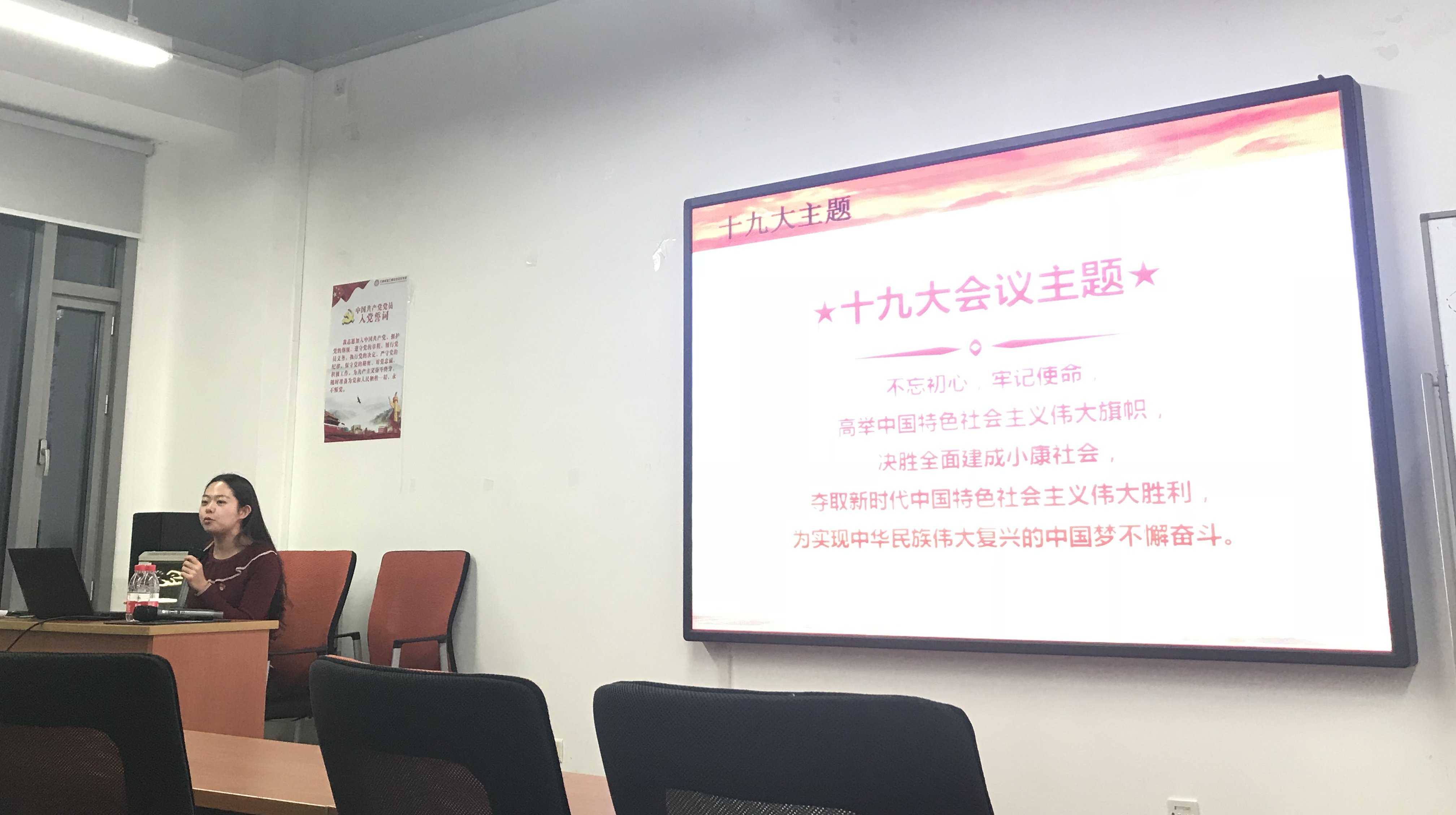 为学习贯彻党的十九大精神,响应学校关于十九大精神宣讲团系列活动的号召,2017年12月29日晚,1407党支部在新主楼B506开展了党支部活动。北航十九大宣讲团讲师、北京高校博士生宣讲团讲师于秋漫出席了活动,为支部的党员同志们带来了一场主题为“回顾五年成就 解读矛盾变化”的讲座。1407党支部全体党员、预备党员、积极分子聆听了讲座。