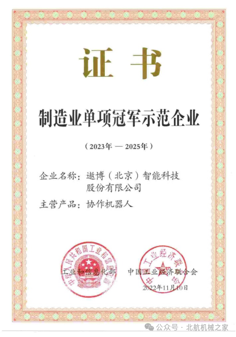 校企深度合作推动企业迅速成长为行业引领者:2015年发布国内首台协作机器人;2016年建成首个产业化基地;2018年成为国内首家通过PL = d安全认证的协作机器人企业;2020年建成首条“协作机器人生产协作机器人”柔性生产线;2021年销量破万台,入选专精特新“小巨人”企业;2022年获国家制造业单项冠军;2023年推出自主全栈式机器人操作系统,打破国外垄断,实现核心部件至整机产品的全链条自主可控。2025年,遨博协作机器人助力“天工”人形机器人在全球首场人形机器人半程马拉松中夺冠,标志我国协作机器人技术跻身国际领先行列。