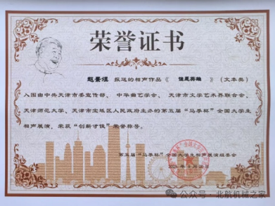 项目启动后,支部围绕以“空天报国”精神为主线的创作方向,深入挖掘了王永志院士等北航杰出校友的感人事迹,形成了《逐梦空天赤子心》等一系列原创曲艺作品。创演过程中,赵景煜、徐以蒙等支部成员获得中国曲艺家协会副主席吴新伯、中国曲艺家协会山东快书艺术委员会副秘书长陈守平等曲艺名家的指导,从节目文本、表演技巧等多个角度得到全面提高,并收获多个省级以上奖项。其中,原创相声《谁是英雄》获得了第五届“马季杯”全国大学生相声大赛“创新才俊”奖,并收录于天津人民出版社出版的《新蕊放歌》一书,《大刀记》获第四届江苏省快板大赛三等奖,并入选第六届中国曲协全国小剧场创作表演人才培训班优秀作品。