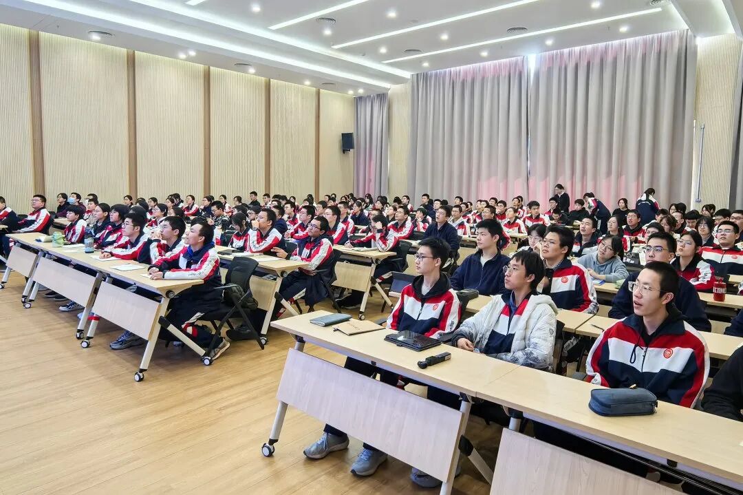 在石家庄一中,招生组一行与校领导进行了座谈交流。随后,苏文平做客一中“致知大讲堂”,为高二优秀学子作《中学生职业生涯规划》专题讲座。她从职业生涯规划的核心理念入手,结合高中阶段学习的主要任务与特点,帮助同学们建立科学认知、找准当下努力方向。