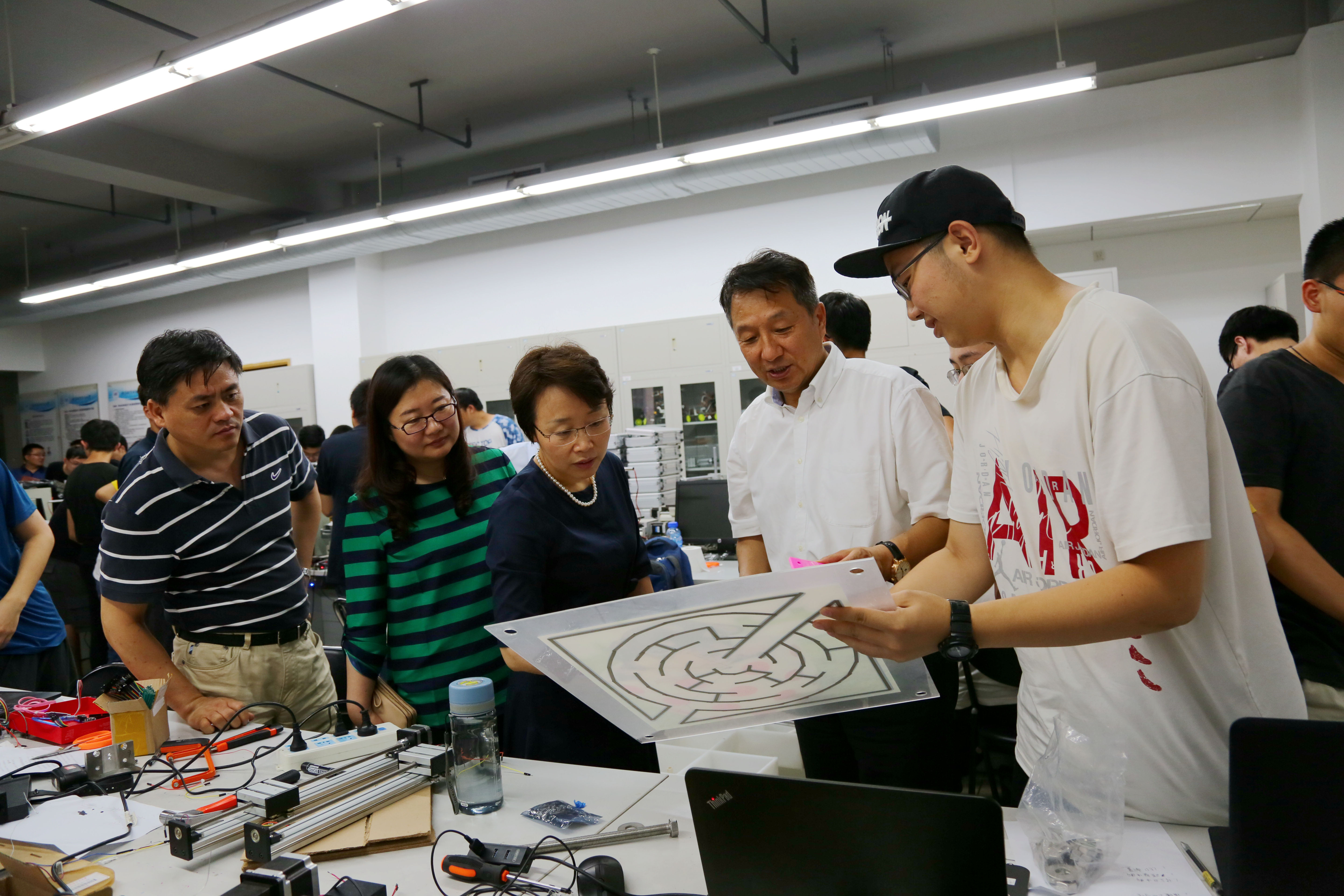 座谈会结束后,曹书记一行参观了学院的机电一体化本科课程实验室、机器人研究所、材料加工与控制系实验室等。