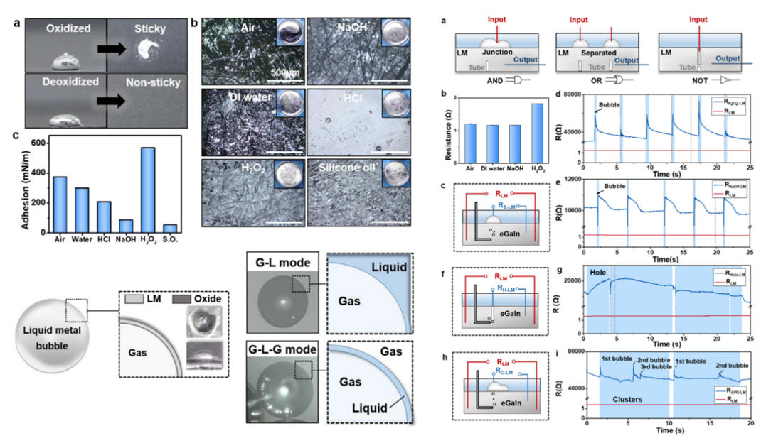 图1. 液态金属表面形态调控及液态逻辑电路构建