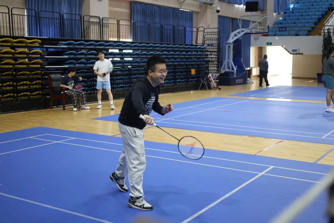 本次羽毛球赛不仅是同学们的赛场,也迎来了特别的参与者——辅导员也换上运动装备,走上球场,与同学们并肩挥拍、同台竞技。发球、起跳、扣杀,每一个动作都干脆利落;场上切磋交流,场下欢声笑语,平日里悉心陪伴的导员,此刻化身默契队友与友好对手,用汗水拉近了彼此的距离。